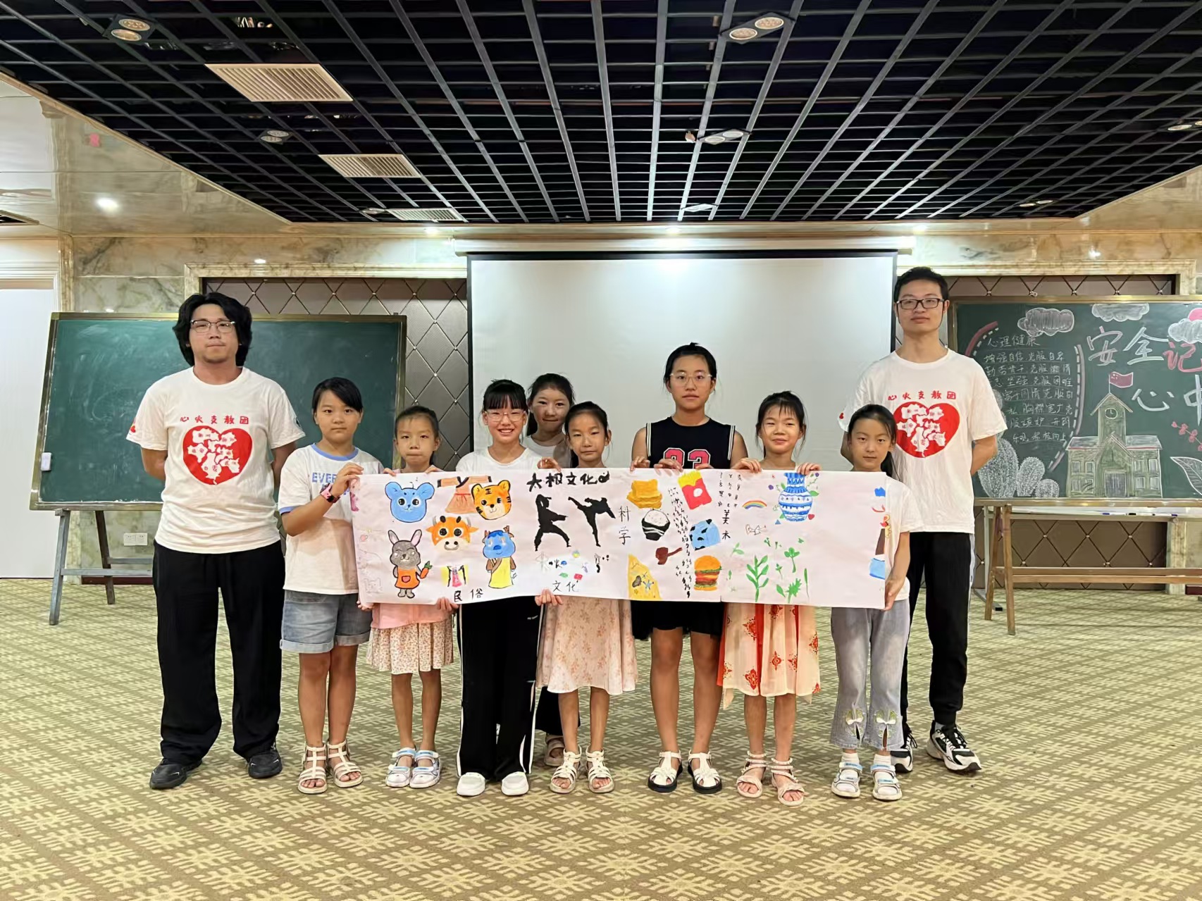 最后,石头店社区点位以特色活动为主题,生动描绘出“硕磷杯”嫘祖镇“村BA”篮球赛和鸣凤社区研学活动的场景。学生们和支教老师一起积极讨论,在画卷的最后绘出了在教室上课的支教剪影、队员的背影,以及“期待下次相遇”的文字,寄托大家对未来的美好期待和对再次相聚的渴望。学生们在绘制过程中,不仅学会了如何表达自己的视觉感受,还学会了如何通过艺术来传达情感和期待。