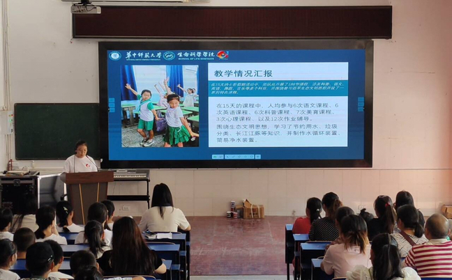 此次活动由支教队队长冯玉果主持,华中师范大学生命科学学院团委副书记、辅导员余璇出席本次活动,全体队员、家长以及学生参与。活动伊始,冯玉果通过照片,向家长们直观地展示了支教队的教学成果:支教队共开展188节课程,队员人均参与6次语文课程,6次英语课程,6次科普课程,7次美育课程,3次心理课程,12次作业辅导与2次趣味运动会。支教队积极贯彻落实“五育并举”理念,助力培养全面发展的阳光少年,设计了丰富多彩的课程:开展积极心理成长系列课程,帮助学生树立乐观心态;开设语文、英语等学科课程,为学生学习新知识打下基础;开设音乐与舞蹈课程,拓展学生兴趣边界……