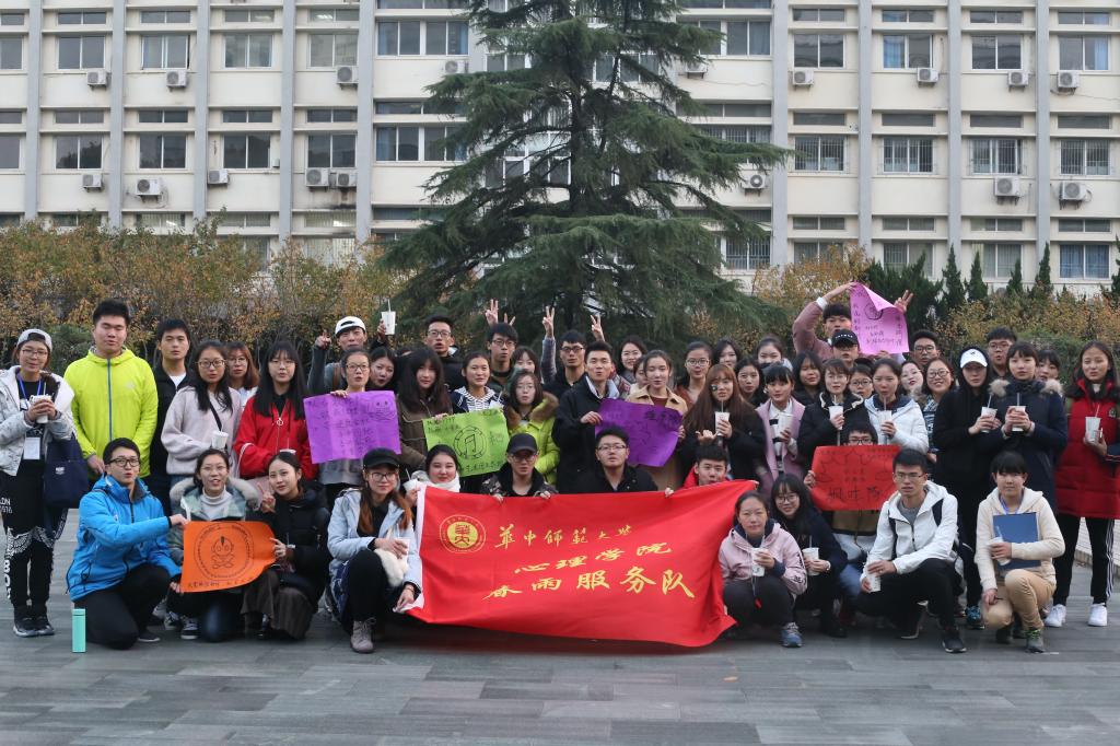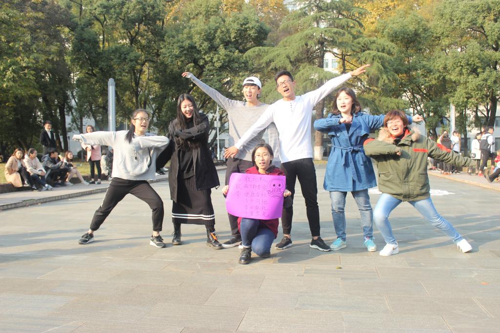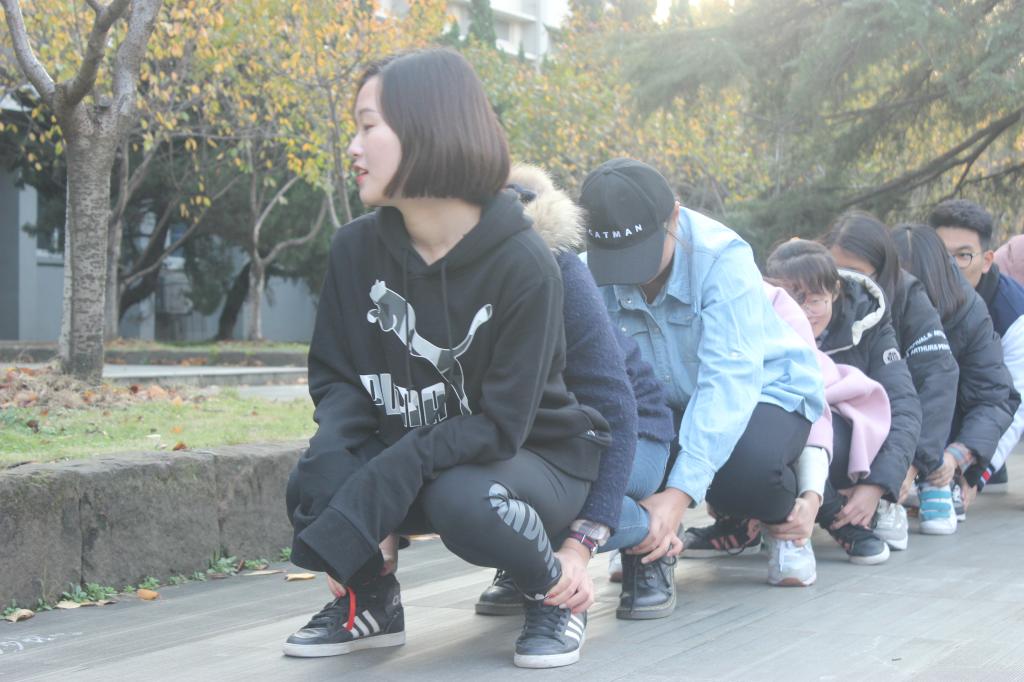 华大艺术团宣传部讯 2017 年 11 月 18 日下午,华中师范大学大学生艺术团在校内博雅广场开展了素质拓展活动。