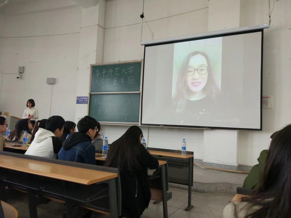 副团长李诗通过讲述自己在华大艺术团两年多的点点滴滴,向新成员们传达了华大艺术团对每一位成员的关心与爱护,展示了这个大家庭的有爱与温暖,并表示欢迎17级的新生们回家!