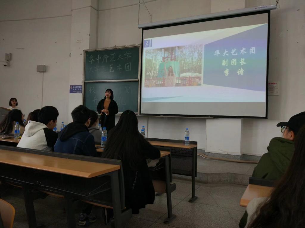 华大艺术团宣传部讯 11月18日下午,华大艺术团在本校九号楼开展本学期 “艺计划”开班典礼。指导老师李哲立、副团长、各团队长们以及华大艺术团全体新成员出席本次活动。