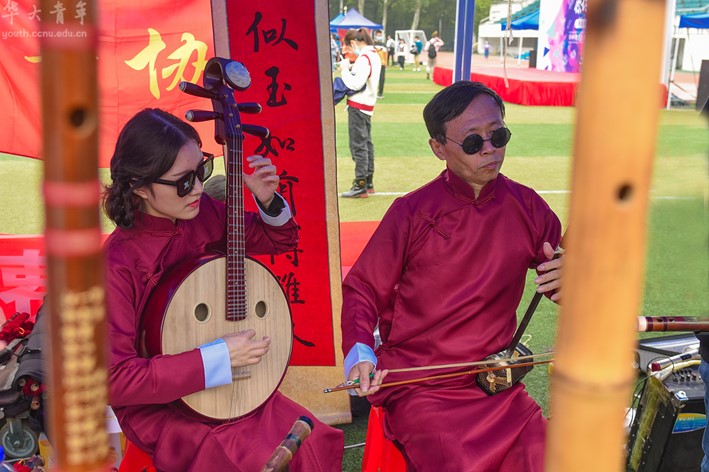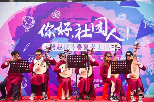 裙裾飘动,笛声婉转,卿衣汉服社与笛箫协会联手演出,为同学们展示中国传统服装和古典民族乐器的独特魅力。历史文化学院2020级新生裴心蕊感叹:“我认为参加社团对于我来说,是提高能力的重要途径。笛箫类乐器也一直是我的挚爱,我也非常想深入学习,并渴望与更多人通过音乐交流看法与情感。”