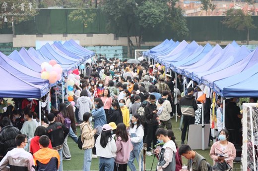 由于疫情等特殊原因,今年的百团大战举办时间推迟。尽管天气不佳,但不少同学早早到场、参与活动。活动伊始,各个社团工作人员在展位上准备就绪,准备开始宣传招新。音乐响起,舞姿飞扬,现场氛围顿时进入高潮。