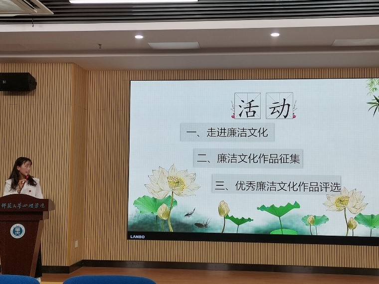 为了推动形成以清为美、以廉为荣的校园文化风尚,培养新时代广大师生“知廉、爱廉、行廉”的道德情操和模范行为,人工智能教育学部积极开展以“廉洁文化作品征集”为主题的团日活动,本次团日活动的顺利开展进一步推动了校园廉洁文化的建设,能够更好地培养了同学们尊廉崇洁、积极向上的思想道德,帮助同学们树立正确的社会主义荣辱观。