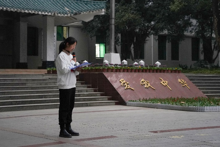 7时整,伴随着激昂雄壮的《义勇军进行曲》响起,升旗仪式正式开始。台上护旗手们庄严肃穆,将五星红旗缓缓升起,台下的师生观众跟唱国歌、行注目礼。学员代表张文捷做国旗下讲话,她向现场师生表达新年祝福的同时,号召华师学子要不忘初心使命、牢记责任担当,在坚定理想信念、关心国家进程、心系世界大局等方面继续下功夫,在新的一年征程中,不断发扬“忠诚博雅、朴实刚毅”的华师精神,将自身理想筑进民族理想里去,将自身价值融入社会价值之中。