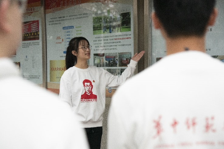 升旗仪式结束后,学员们共同走进华中师范大学国家大学科技园橱窗展,参观了华中师范大学科技创新展板,陈丽妃同学为大家讲解,进一步增进对我校文化科技事业发展的了解,增强创新意识与学习能力。