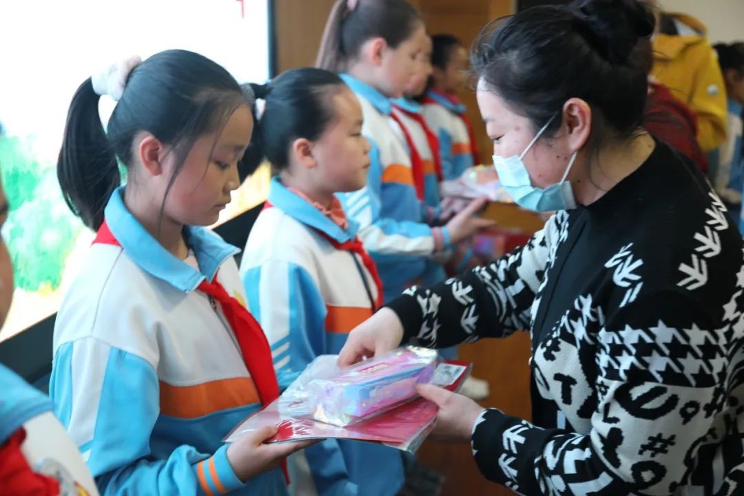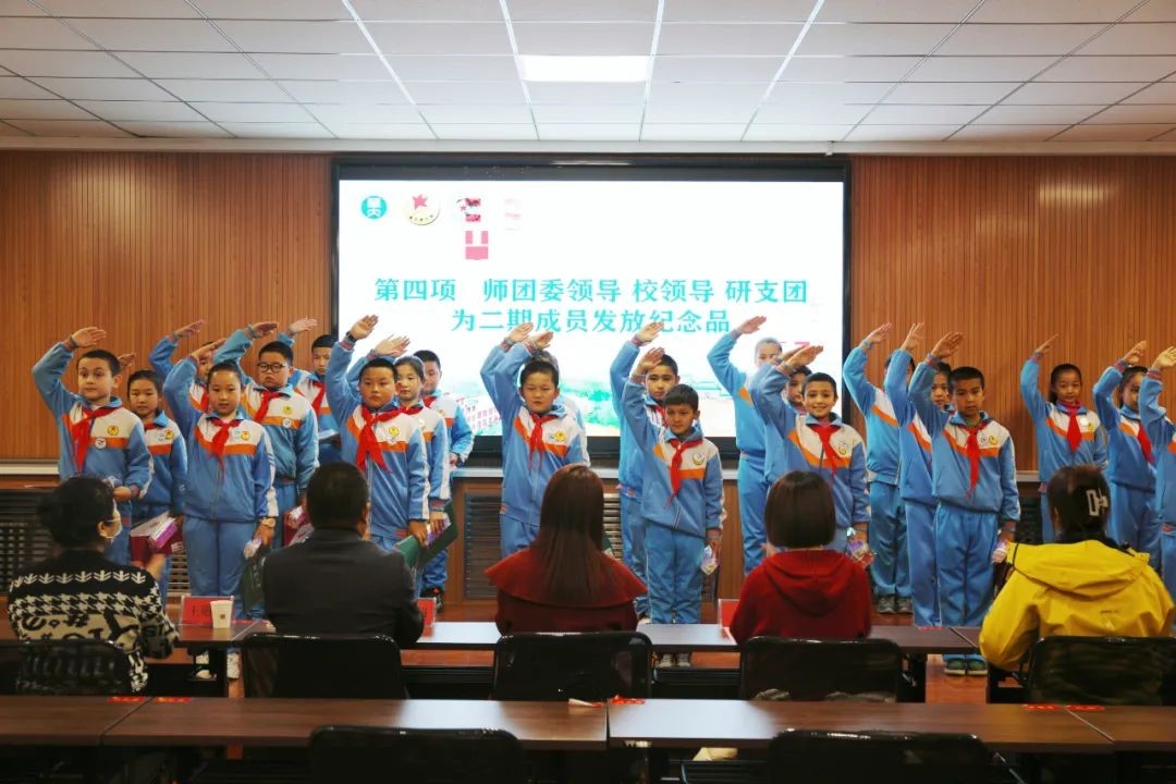 师市团委、第五师小学领导及华师研支团为学生赠送华师纪念品