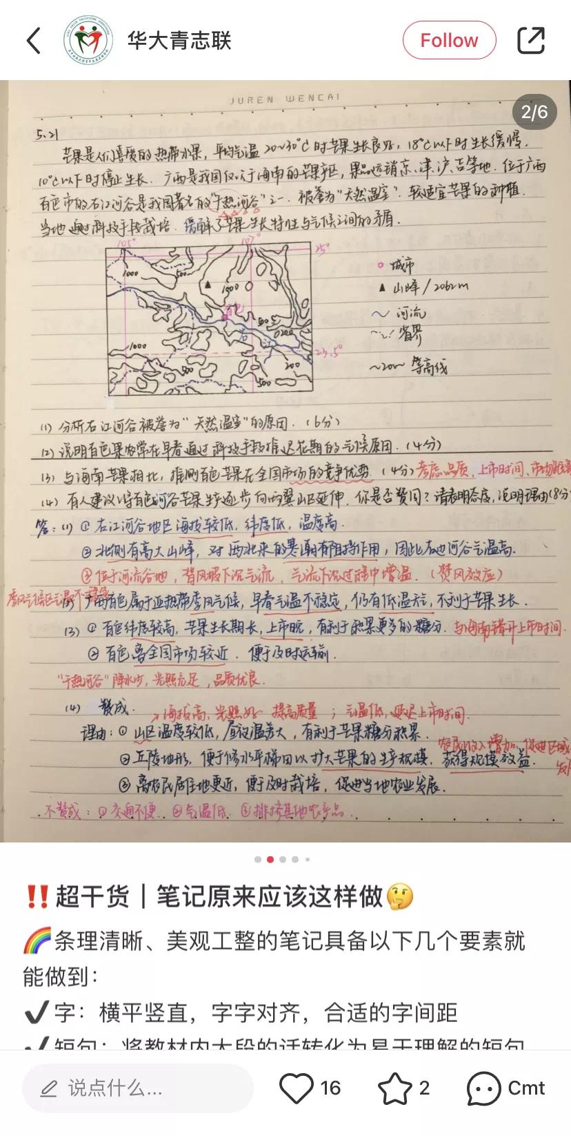 为帮助初高中同学更加高效地学习,华大青志联在招募的志愿者中征集优秀初高中学科笔记并通过小红书平台专门账号分享。清晰的知识点讲解和重难点标注帮助同学们明确了学习方向,避免了无用功,节省了课后重新整理笔记的时间的精力,使得网课下的学习更加高效,条理清晰。共计50位志愿者参与笔记分享,累计志愿时长10小时。