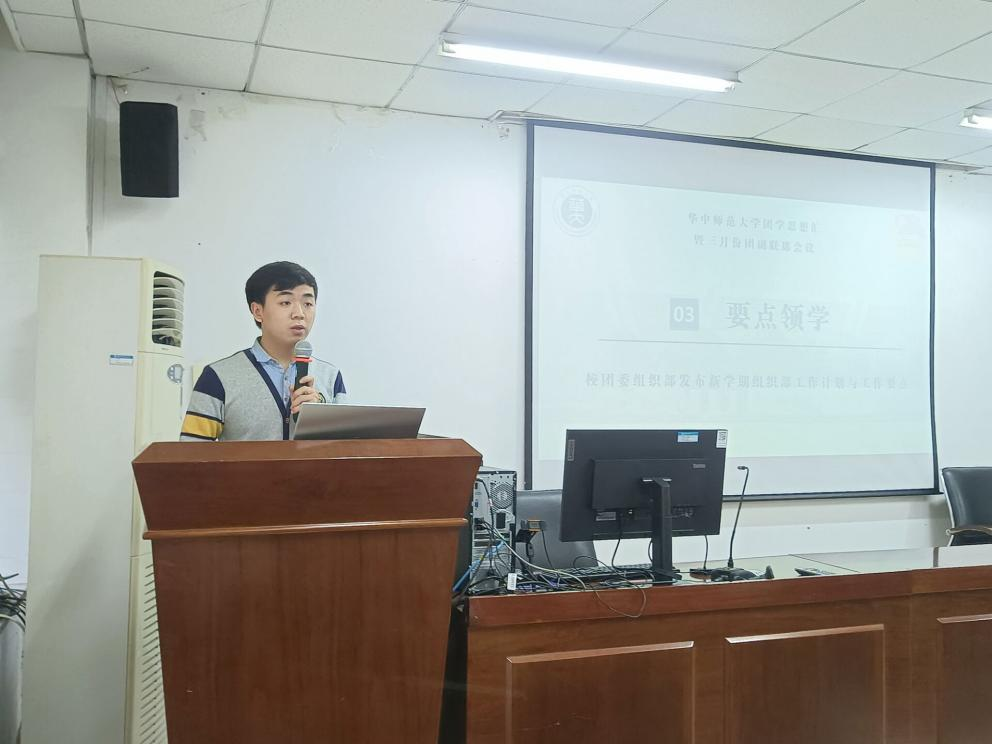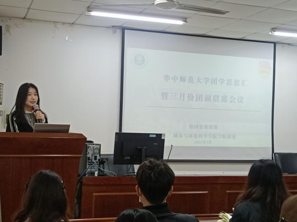为进一步激发基层团组织活力、提升团学骨干工作能力、共同推进新学期团组织工作发展,3月25日下午,华中师范大学团学思想汇暨三月份团副联席会议在10号楼南楼406会议室顺利举行。校团委副书记(学生)、组织部部长陈凌继霄,城市与环境科学学院团委书记王曼玉,校团委组织部全体成员,各学院本科生团委副书记、研究生团委副书记及相关部门负责人参与本次活动。本次团学思想汇由校团委组织部主办,城市与环境科学学院团委承办,共分为“时事导学、交流互学、要点领学、讨论研学、点评促学”五个环节,校团委组织部刘博文主持活动。