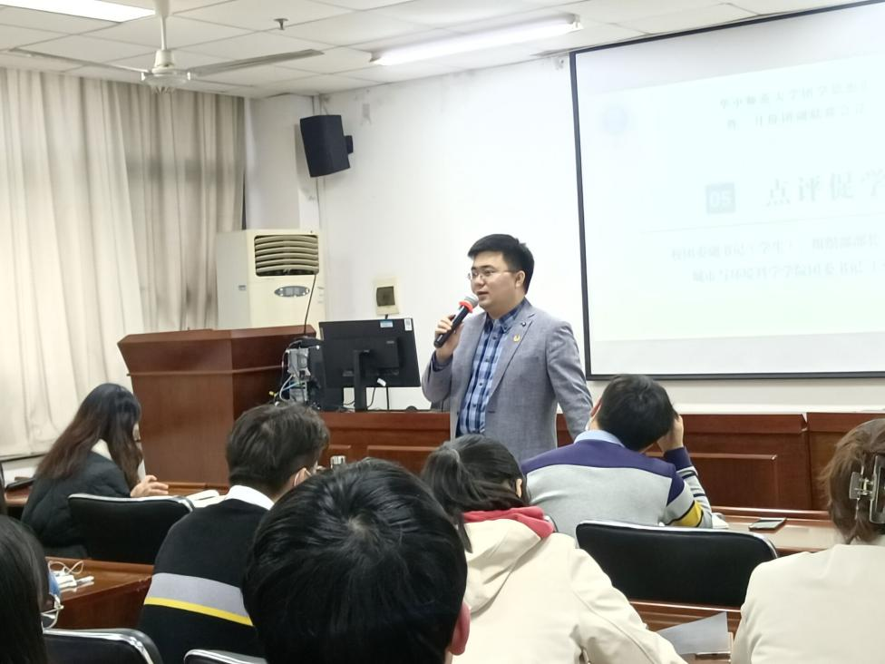 在点评促学环节中,王曼玉老师就今天的团学思想汇发表了自己的感想总结,并寄语各位团学骨干“我们要以永葆的青春活力做好团学工作。”随后,陈凌继霄老师发表总结,对于本年度组织工作要求提出加强“三力一度”。即增强组织力、引领力、服务力,做好基层团务组织工作,加强思想政治引领和意识形态引领;增强大局贡献度,思考如何发挥好学院优势,优化融入学院大思政格局。
