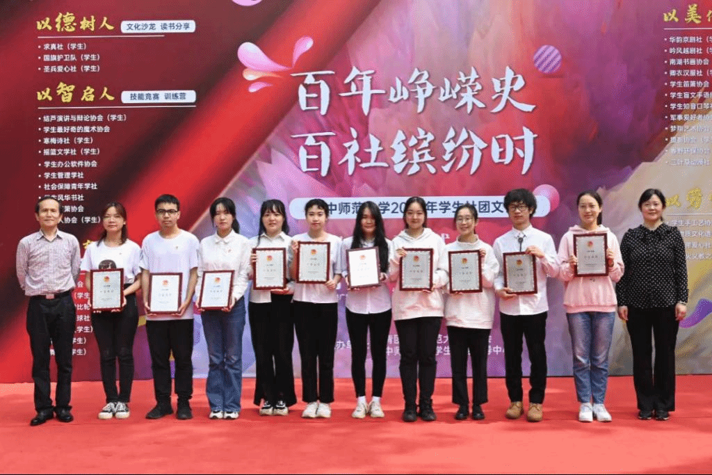 华大青年讯(记者 李秀璐 段雅芳 卢梦欣 严煜天 王铭)为庆祝中国共产主义青年团成立100周年,充分发挥学生社团育人功能,落实社团作为立德树人和推进素质教育的重要载体作用,2022年5月21日,华中师范大学2022年学生社团文化节正式启动。此次社团文化节围绕“百年峥嵘史 百社缤纷时”主题,带领学生感悟百年团史,弘扬传统文化,强化思想引领,培育爱国情怀,“五育”并举为人才培养蓄力赋能,充分展现华师学生社团的人文与科技魅力和华师学子的昂扬精神与蓬勃朝气。