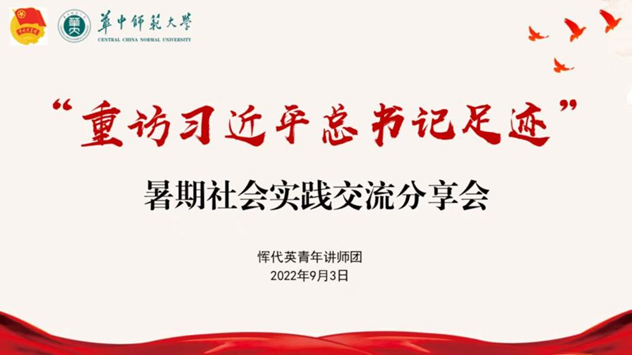 华大青年讯(文字 杨骥瑶 李鑫 李明)为深入学习贯彻习近平总书记的重要讲话精神,推动思政课堂走出校园,与实践结合、与生活结合,不断提升立德树人实效,激励广大华师青年牢记嘱托、砥砺前行,以昂扬的精神面貌迎接党的二十大胜利召开,9月3日下午14:00,2022年恽代英青年讲师团“重访习近平总书记足迹”暑期社会实践交流分享会成功举行,校团委副书记(学生)、组织部部长、恽代英青年讲师团指导老师陈凌继霄和2022年恽代英青年讲师团全体成员出席本次会议。恽代英青年讲师团团长谢慧昭主持会议。