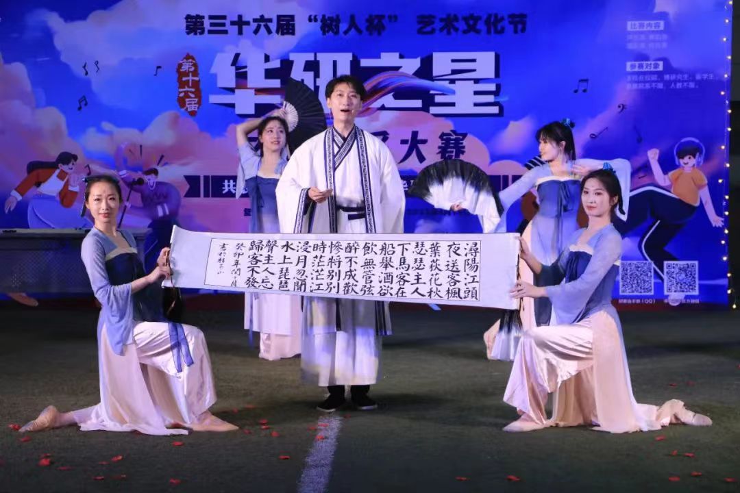 群舞《奔跑的青春》用动感的节律和欢快的舞蹈宣告这场视听盛宴的开场;群舞《梦回琵琶舞千年》用悠扬的琵琶和曼妙的舞姿传递着历史的回音,书写着华大的底蕴;京胡演奏《夜深沉》用圆润低沉又回环往复的京胡带来直击心灵的震撼;声乐《迎接》四重奏时而轻柔、时而激昂,展现音乐的美丽。