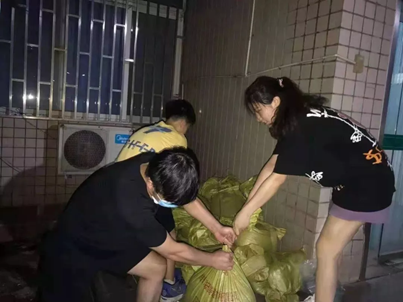 在所在社区脱险后,体育学院2018级学生孙玉叶第一时间主动报名参加了社区的志愿活动,负责提醒商户做好防汛。