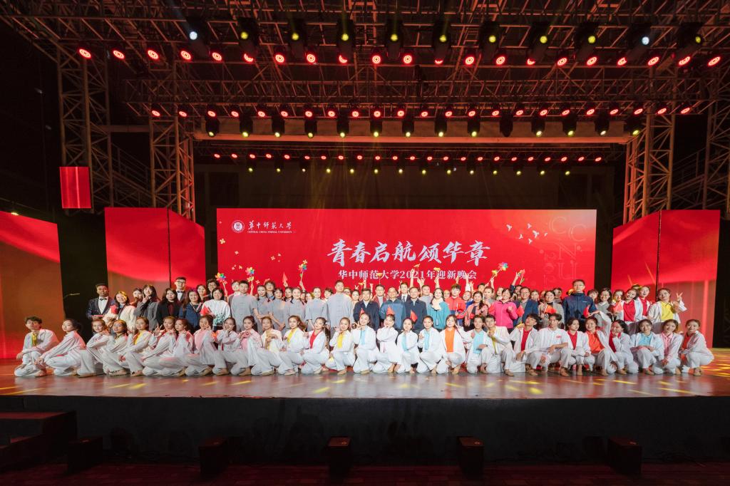 华大青年讯(文字 卢俊霖 董子怡 刘恩延 陈玮譞 摄影 党委宣传部)10月10日晚19:00,“青春启航颂华章”华中师范大学2021年迎新晚会在露天电影场拉开帷幕。晚会以宣传贯彻习近平总书记在庆祝中国共产党成立100周年大会上的重要讲话精神为基本宗旨,将“全员育人、全程育人、全方位育人”的精神贯穿始终,以“线下主会场+线上分会场”的表演模式喜迎2021级新生入学,通过呈现思想内涵深厚、育人元素丰富、形式青春活泼的精彩节目教育引导广大新生学史增信、知校爱校,营造了温馨有爱、勤学砺行、爱国奋进的校园文化氛围。华中师范大学党委副书记查道林,党委副书记、纪委书记陈厚丰,副校长彭双阶,校长助理林更茂,教育部中南地区高校第78期中层干部培训班、湖北省第85期省直机关处级干部进修班的学员代表,校内各职能部门、各培养单位的领导、老师,体育学院2020级硕士研究生、东京奥运会羽毛球女双第五名、苏迪曼杯世界羽毛球混合团体锦标赛冠军李茵晖莅临晚会。2021级本科生、研究生辅导员及3000余名新生代表参加活动。近2万人次通过线上直播的方式观看晚会。