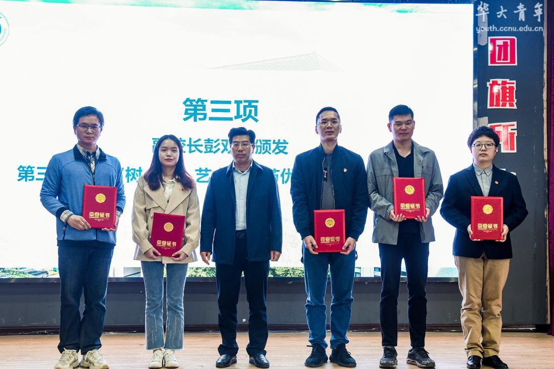 会议伊始,参会师生观看了第三十四届“树人杯”艺术文化节总结视频,共同回顾了第三十四届“树人杯”艺术文化节的优秀成果。随后,校团委书记麻旎宣读了《华中师范大学第三十四届“树人杯”文化节活动结果的通报》,化学学院、数学与统计学学院、美术学院、音乐学院、马克思主义学院获得本届艺术文化节“优秀组织单位”称号,副校长彭双阶为获奖学院颁奖。