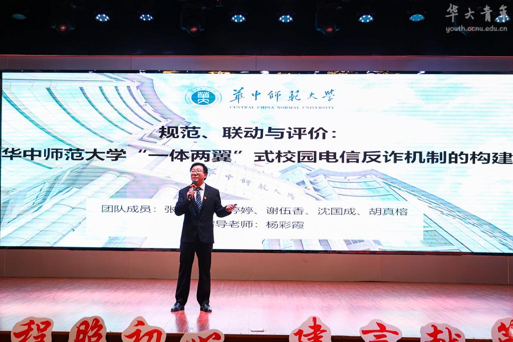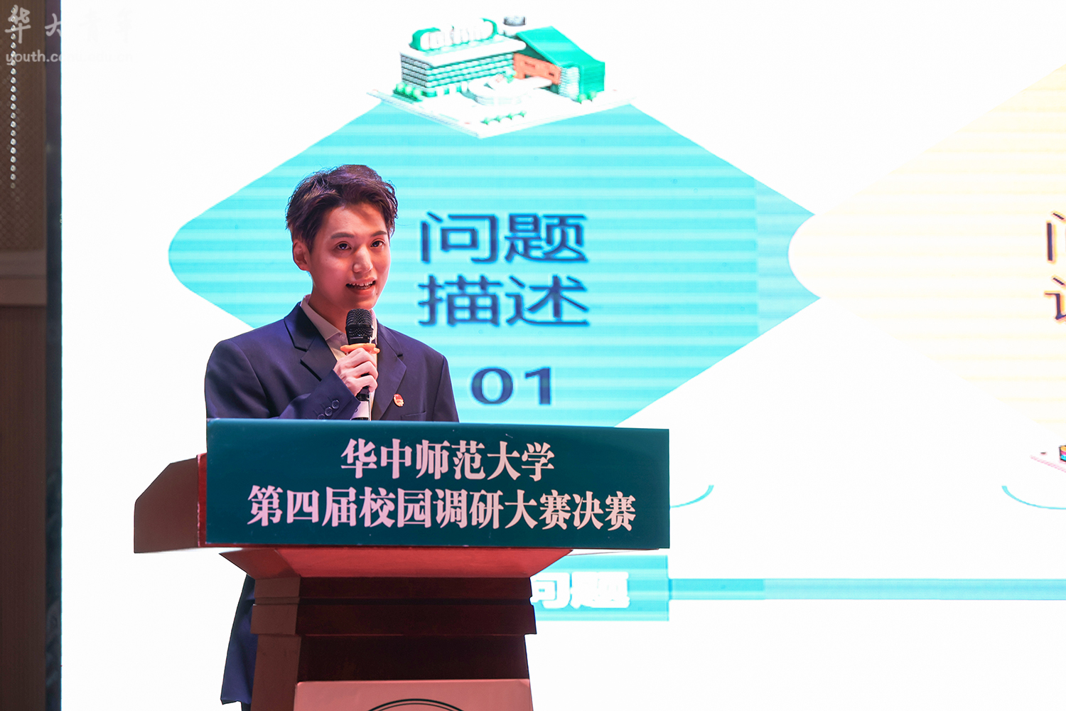 华大青年讯(通讯员 唐艺卓 李科丹)10月17日下午,“百年征程照初心·建言献策启新程”华中师范大学第四届校园调研大赛决赛于大学生活动中心五楼演播厅举行。副校长彭双阶,学校办公室、党委宣传部、本科生院(党委学生工作部)、研究生院(党委研究生工作部)、科技处、后勤保障部、保卫处、校团委、图书馆、人工智能教育学部等相关部门负责人出席活动。湖北省委政研室机关纪委书记、二级调研员张红松,湖北省委网信办网络传播与评论处副处长李峰巍,华中师范大学政研室(综改办)主任洪早清、社会学院副院长徐晓军担任评委。