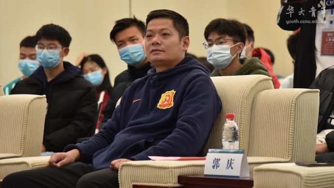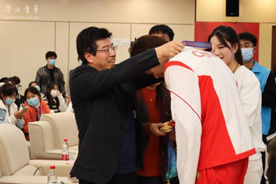 体育学院党委书记郭庆代表学院寄语张子扬。他充分肯定了以张子扬为代表的华师学子在体育领域取得的成就,并从专业角度解读了张子扬成功路上的“关键时刻”。他表示,期待张子扬在国际赛场上取得更加优异的成绩,最终站上最高领奖台。