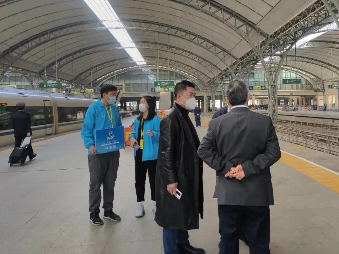 在接站组,研支团成员李显洪于11月14日晚到达武汉站,开始协助接站工作。11月15日上午,翁艾迪、叶政通和李英洁分别在汉口站、天河机场上岗志愿服务,以饱满的热情迎接各位嘉宾和代表,协助行李运送以及车站引导工作,展现了良好的志愿者风采。