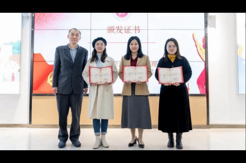 活动现场,时中文、胡志勇、麻旎、高稼祥共同为华中师范大学经济与工商管理学院“金蕊”财商教育志愿服务基地揭牌。此外,本次活动现场还向华中师范大学经济与工商管理学院教师杨柳、赵万、李好颁发了“长江证券投资者教育基地财商教育特聘导师”聘书;授予水果湖第二中学教师刘晓宁“优秀组织老师”荣誉证书。