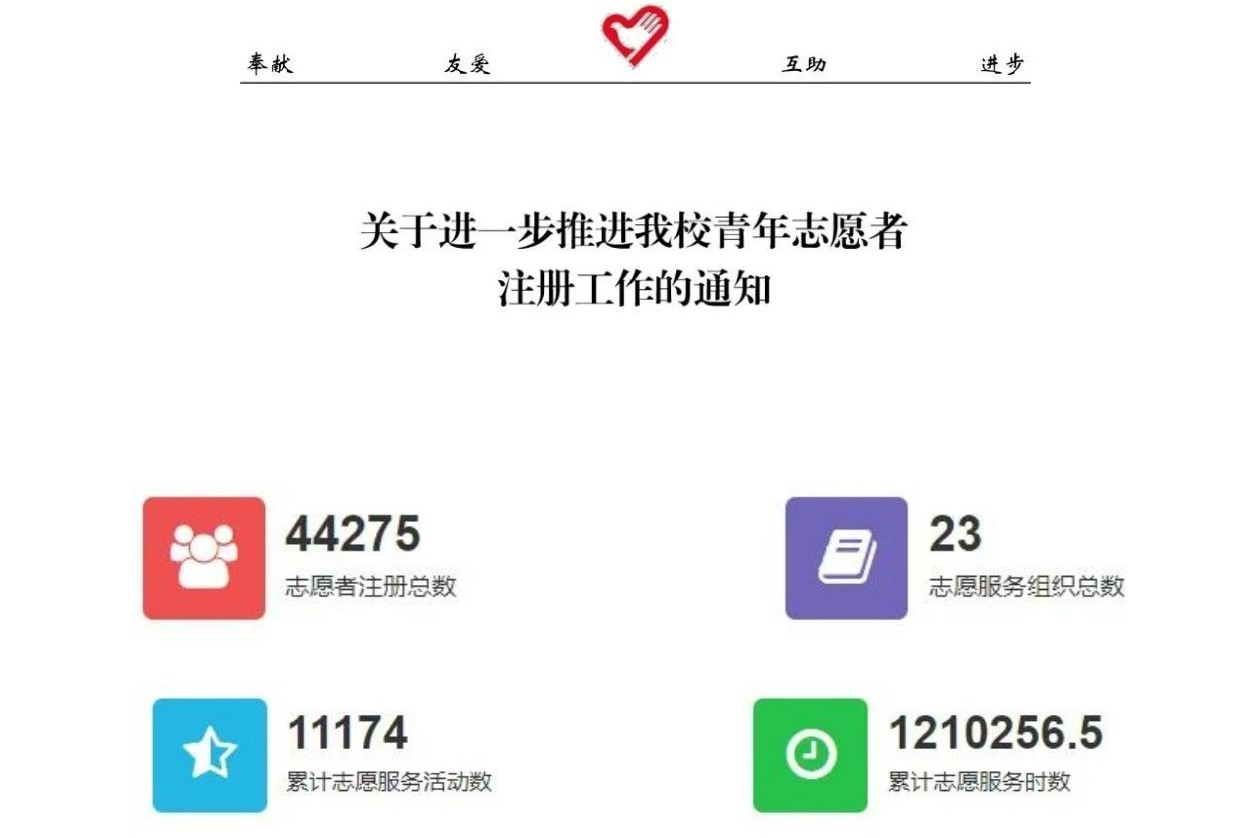 华大青年讯(记者 陈钇桔 毛国樨)三月伊始,校青年志愿者联合会面向全校发布工作通知,积极组织华师学子线上注册,成为中国青年志愿者。截至3月5日,华中师范大学现有在校注册志愿者44275人,累计志愿服务总时长达1210256.5小时。