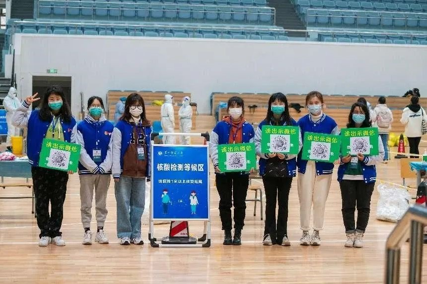 为落实疫情防控常态化工作,保障全校师生的生命安全和身体健康,校青年志愿者联合会自开学以来,组织176名青年志愿者先后开展核酸检测、社区排查疫苗接种等志愿服务工作,累计服务近一周,时长达972.5小时。志愿者们在桂子山头、南湖之畔、教工社区等地四处奔波,他们在简单而又繁琐的工作中始终热忱以待,用心守护学校的稳定与安宁,展示华师学子的担当。