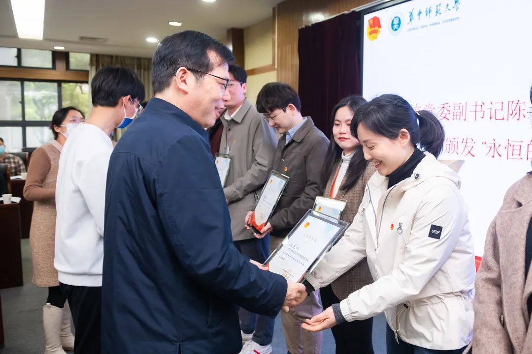 在转岗团干依次分享从事共青团工作的感言后,陈迪明同志为转岗团干颁发“永恒的青春”纪念牌。