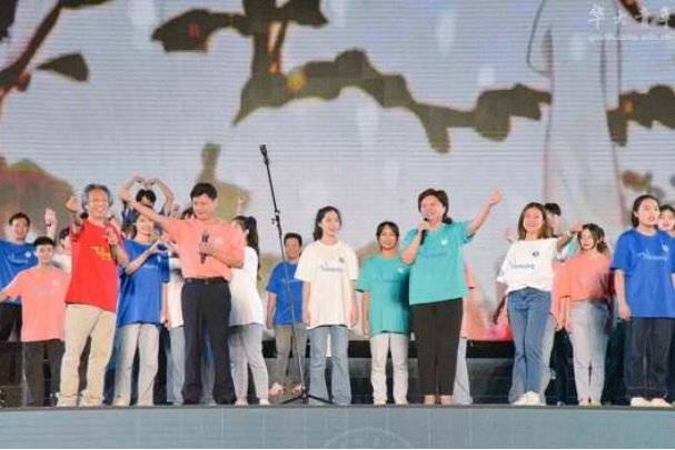 “爱你老师,哺育的辛劳,似夏日清风拂面的妖娆。爱你同学,温暖的拥抱,泪水抚慰离别的微笑。”Tiankong合唱团深情演绎2022年华中师范大学原创毕业歌《爱你》,以学子心声表白华师。“我会想你!我会一直想你!”校党委书记赵凌云、校长郝芳华作为特邀嘉宾,登台献唱,为学子们送上毕业祝福,将现场气氛推向高潮,现场毕业生热烈回应、一片欢呼。