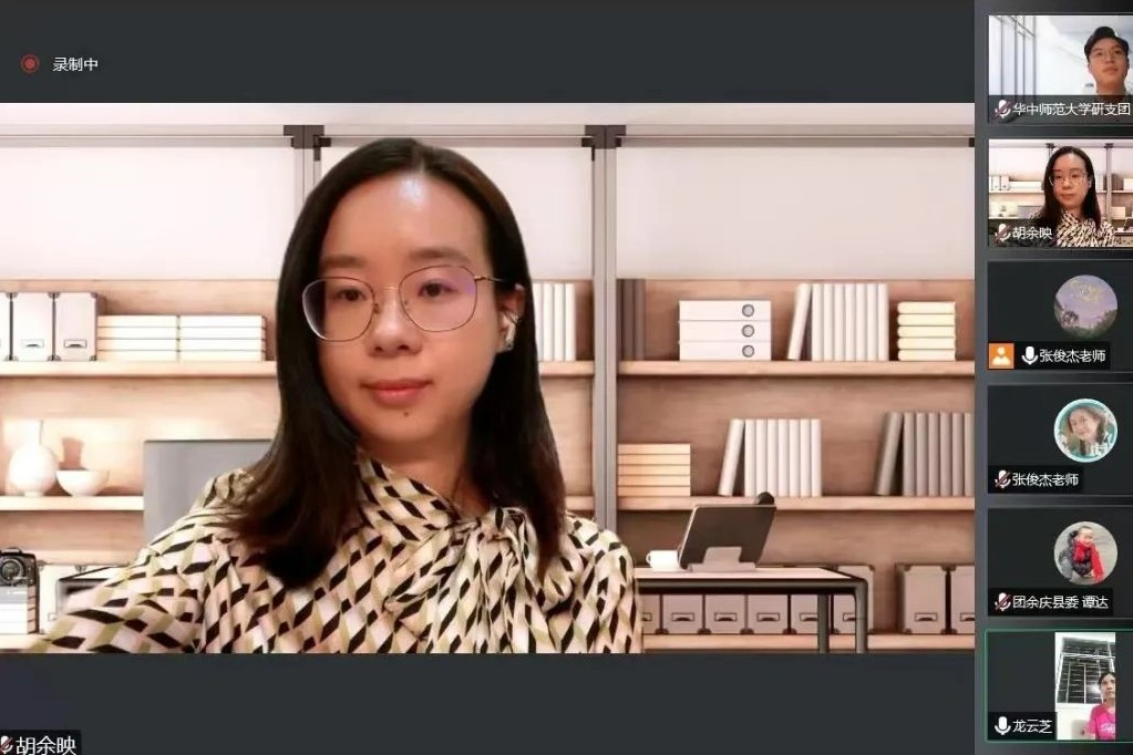 华中师范大学团委副书记胡余映进行总结讲话。她指出此次“云支教”活动旨在培养学生科学健身习惯、提高志愿者育己育人技能、充分发挥高校服务社会效能。此次活动不仅是高水平的体育育人平台,还是华中师范大学与余庆县及他山中学深化交流的窗口,她希望在未来华师团委能与余庆县及他山中学有更多的合作机会,携手向未来。