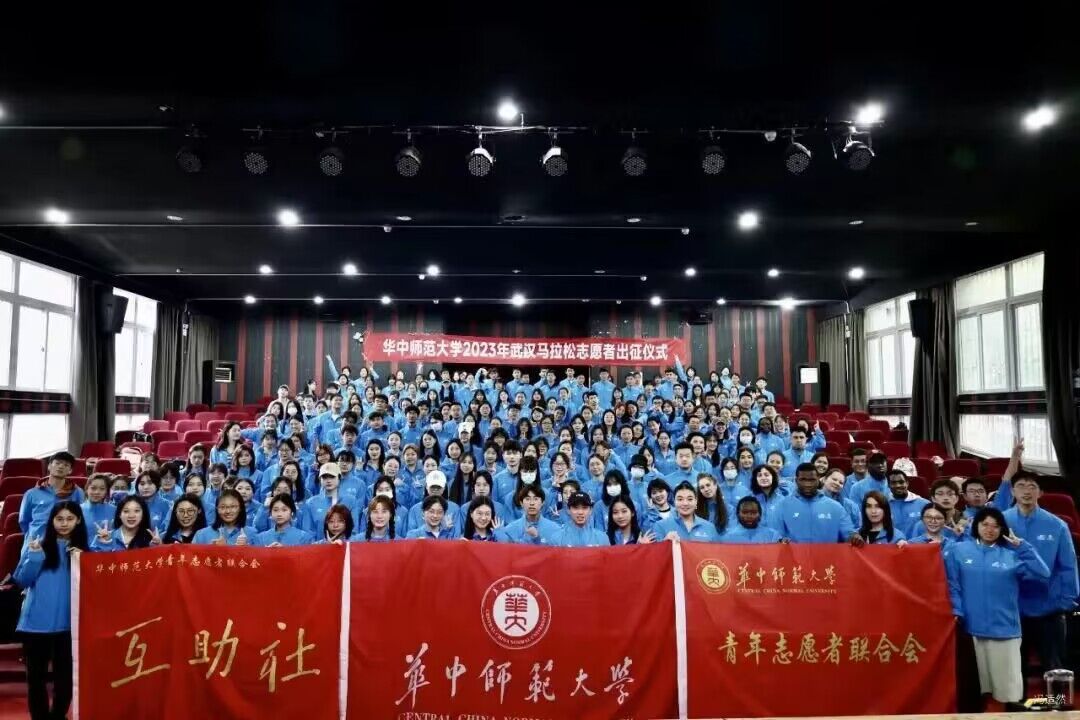 就在汉马开始的前一天,伴随着“汉马,华师志愿者来了!华师志愿者,为汉马加油!”的响亮口号,华中师范大学2023年武汉马拉松志愿者出征仪式顺利举行。恽代英互助社副社长、数学与统计学学院2020级本科生冯适然表示,华师“小葫芦”为汉马做足了准备!从志愿者的招募、面试到培训、出征,恽代英互助社精心策划了本次志愿活动的各个环节,他们一定会积极展示华师志愿者的青春风采,将志愿精神传递到15公里站点的每一个角落!
