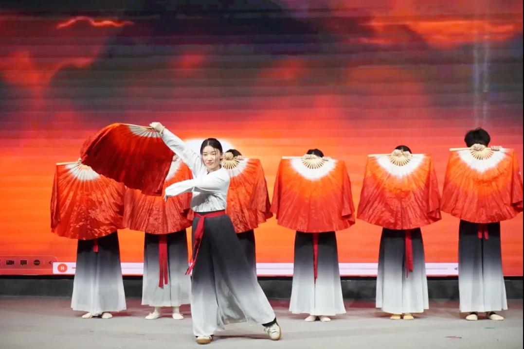 红日升在东方,其大道满霞光。开场舞《万疆》在扇叶开合间,呈现出华夏大地经历岁月变迁,仍于霞光中绽放出耀眼光芒的磅礴气势,抒发了华师学子胸中质朴真挚的爱国心情。