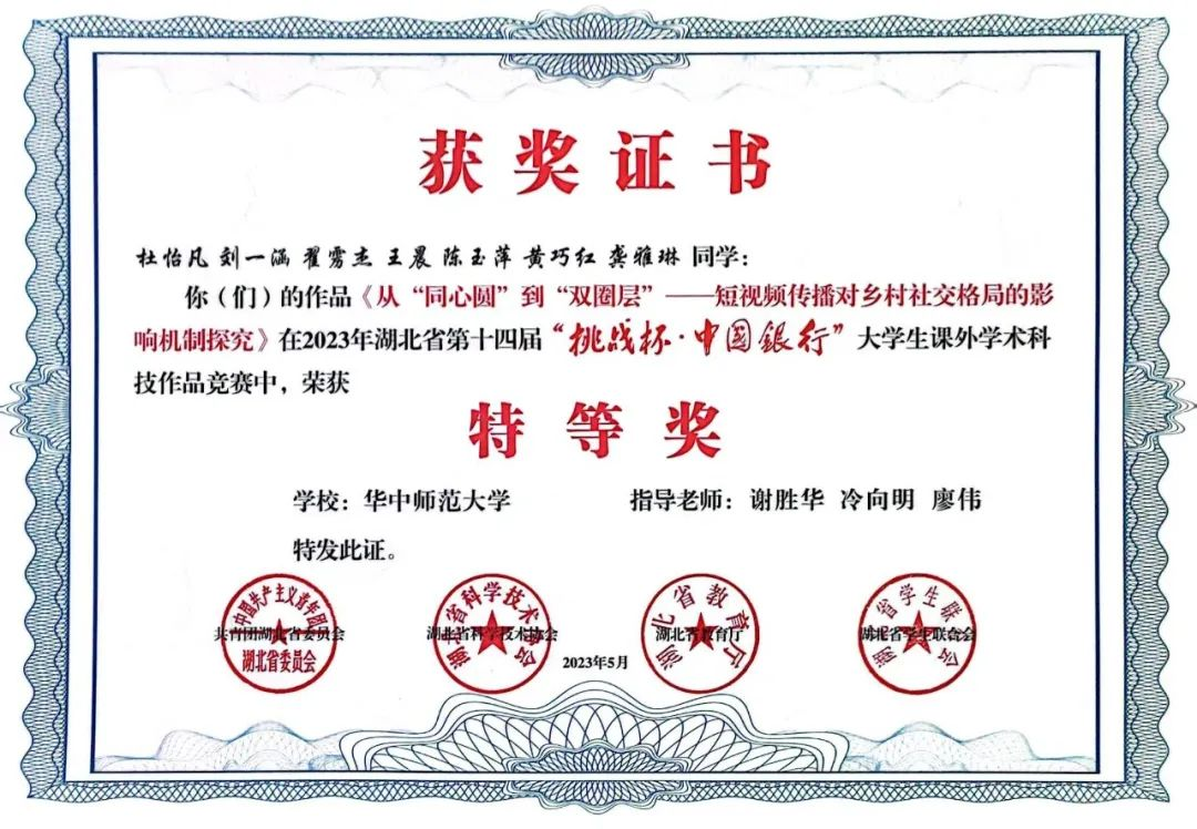 他们深入驻点村,撰写2份规划方案,深入推进调研成果的理论转化,参与湖北省第十四届“挑战杯”荣获特等奖。