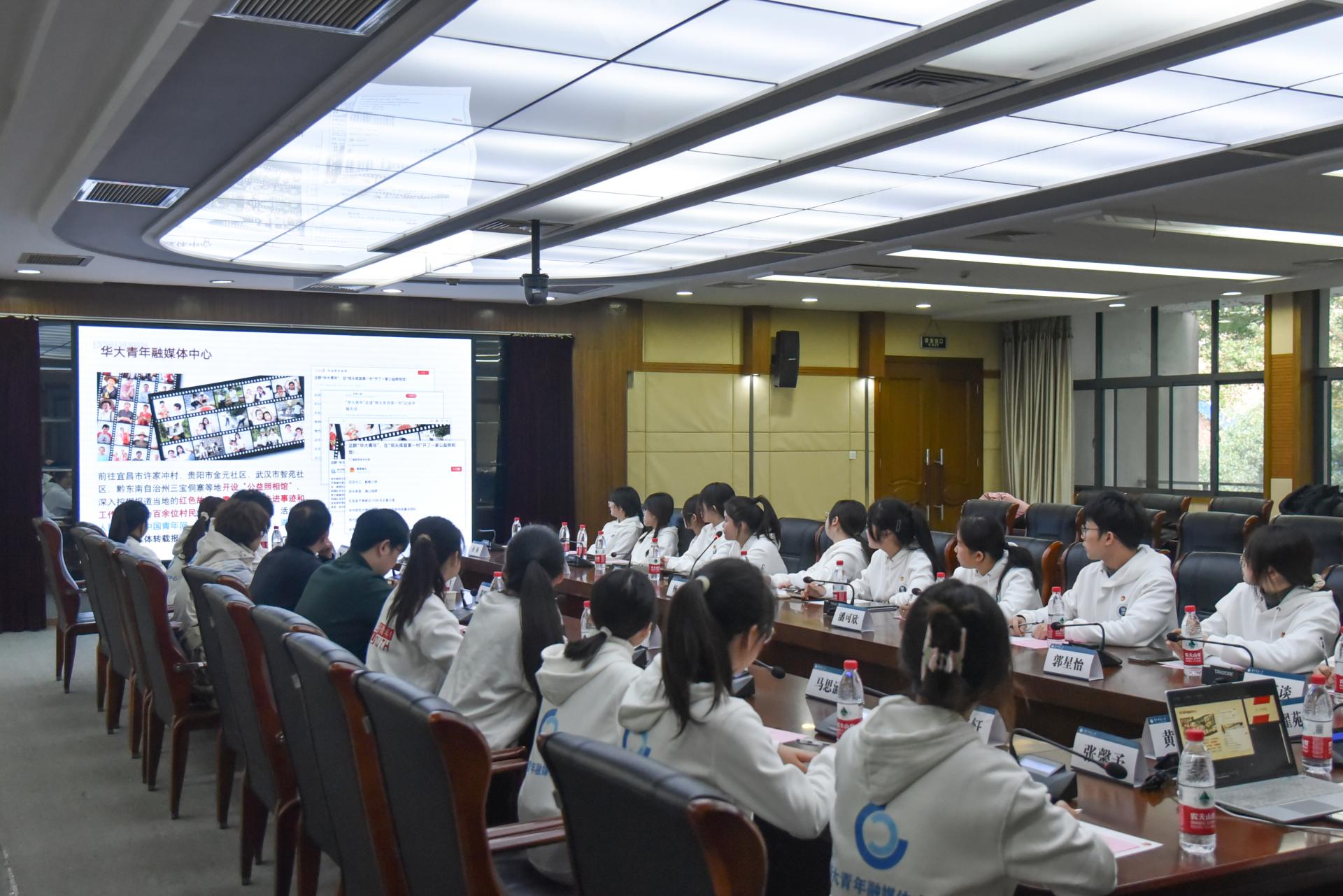 随后,华大青年融媒体中心总编室成员杨琪、潘可欣、刘怡、陈赞宇针对其分管部门依次进行工作汇报,对华青自换届以来的工作情况、成果收获以及未来规划展开介绍。