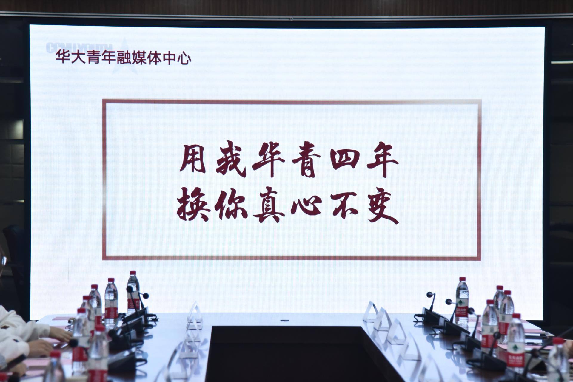 会议伊始,华大青年融媒体中心学生骨干及校团委宣传部学生助理依次进行自我介绍。华大青年融媒体中心总编室成员陈冲以“奋进中的华大青年融媒体中心”为主题展开汇报。她向与会成员介绍了华大青年融媒体中心的基本概况与建设发展历程,带领他们回顾华青过去所取得的众多荣誉。陈冲表示,在新征程上,华大青年融媒体中心将继续在校团委的带领下,推进组织建设、完善部门分工、深化合作共建,将华青建设为优秀宣传中心,打造融合传播新局面。