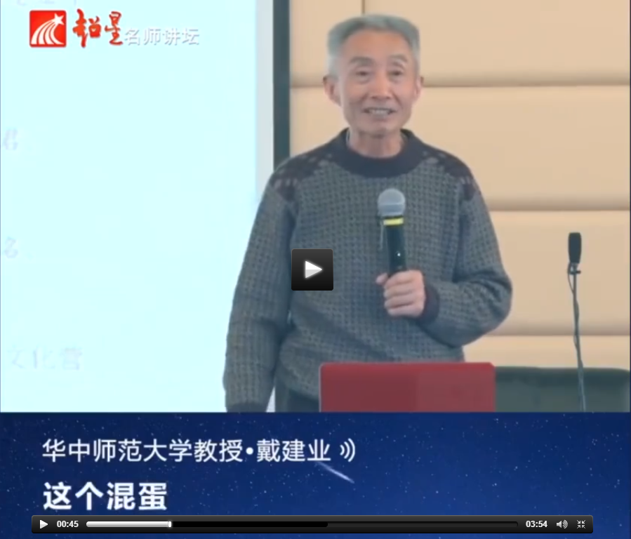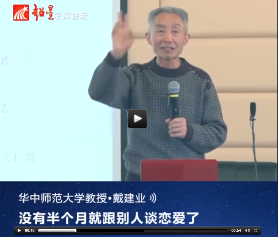 视频在网络上被疯狂转载时,戴老正在北京讲学,他对自己的走红颇感意外。戴老用“一个不会讲普通话的普通的大学老师”来形容走红前的自己,上课、写文章、作讲座、和“肆无忌惮”地发表一些自己的见解是他的日常。