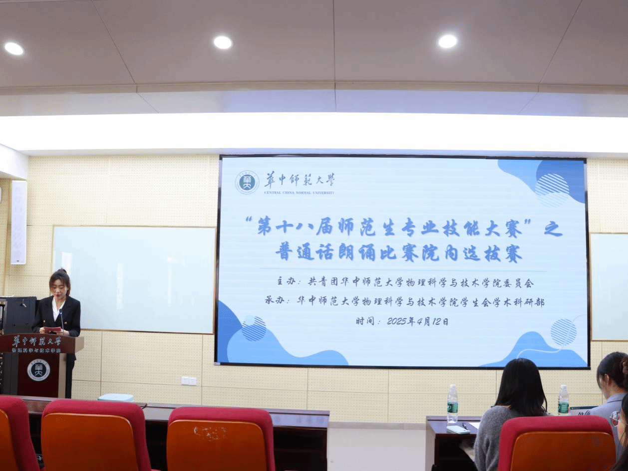 华大青年讯(通讯员 李博)为提高师范生语言表达能力,引领师范生共览经典,传承优秀传统文化,物理科学与技术学院(以下简称“物院”)举行了“第十八届师范生专业技能大赛”之普通话朗诵比赛院内选拔赛,本次比赛于4月12日在9号楼9557报告厅正式举行。赵嘉怡、韩婷作为评委出席比赛。
