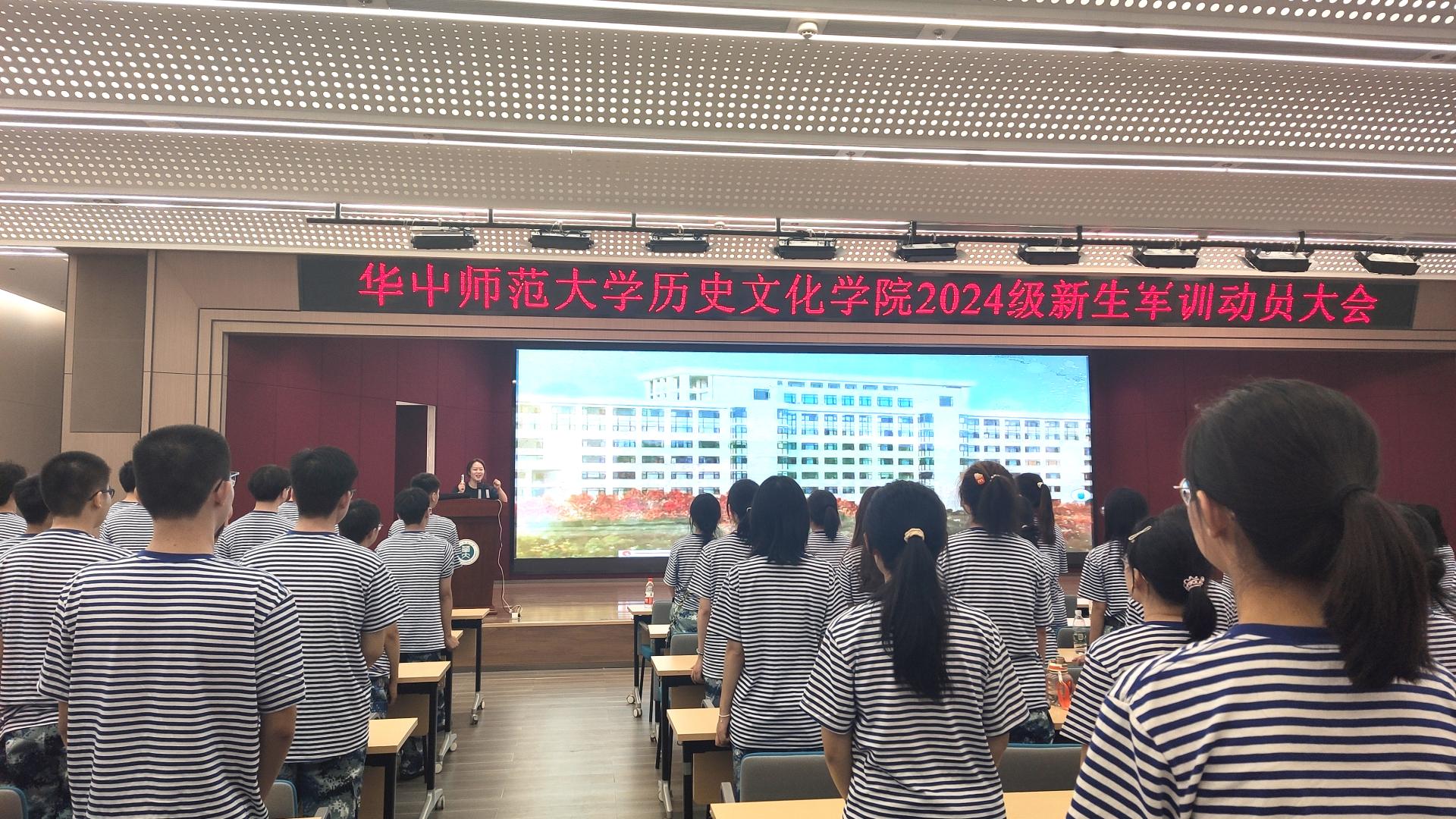 华大青年讯(通讯员 陈沐涵 祁茹玉 陈虹希 李高美)9月2日晚,历史文化学院(以下简称“历院”)2024级本科新生见面会暨军训动员大会于新文科楼一楼报告厅召开。院党委副书记梁方勇、军训带队教官、2024级本科辅导员付佳琪出席,2024级全体本科新生参与本次大会。