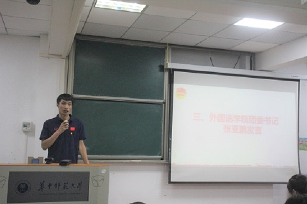 外国语学院团委书记张亚鹏总结发言。首先,张亚鹏对各支部团支书前期的辛勤付出和贡献表示感谢,对21级新任团支书们表示热烈的欢迎,并充分肯定了各支部和团支书做出的成绩,并寄语各支部团支书要主动调适心态,踏实工作。其次,他希望各支部团支书珍惜岗位的锻炼机会,做务实进取,主动对标岗位职责和内容,提高自身的工作能力。在工作态度上,他希望各团支书化被动为主动,把每个任务当作锻炼机会,除了做好日常的支部建设工作,也要积极担负起督导动员的责任,不断增强支部凝聚力。最后,他强调本学期将加强团支部、团支书、团员的考评,希望各支部团支书化压力为动力,以更高的标准鞭策自己。