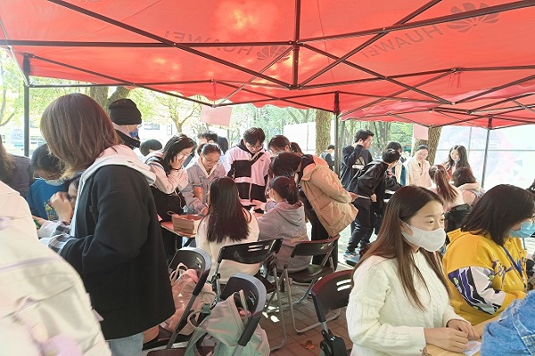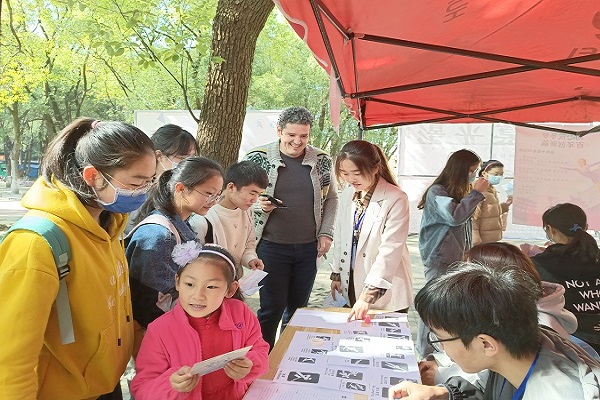 活动分为“智识冬奥”、“明辨题文”、“趣绘谜底”和“巧效图影”四项,参与者需要在参加活动前于游戏起点领取一张集章卡,并选择自己喜欢的任务去完成,工作人员根据答题情况给予印章。参与者可一人或组队参与,集齐四个印章可到终点处进行一次抽奖,集齐6个印章可抽奖两次。活动初始,只有几位同学跃跃欲试。随着游戏的进行和工作人员的鼓励,活动的摊位渐渐围满了人,很多路过的同学和周边玩耍的孩子都很积极地参与了进来。