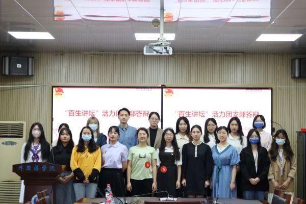 华大青年讯(通讯员 刘璇 陈雨)5月13日中午,外国语学院于3402教室举办了“百生讲坛”活力团支部评比活动。活动旨在落实习近平总书记关于青年工作的重要思想,增强基层团组织凝聚力,引导各支部持续深入地学习习近平新时代中国特色社会主义思想。活动邀请到外国语学院团委书记潘英子、团委副书记牛静、19级英语系辅导员邱领、21级小语种辅导员徐圆和2021年度红旗团支部1902支部团支书季可人担任评委。