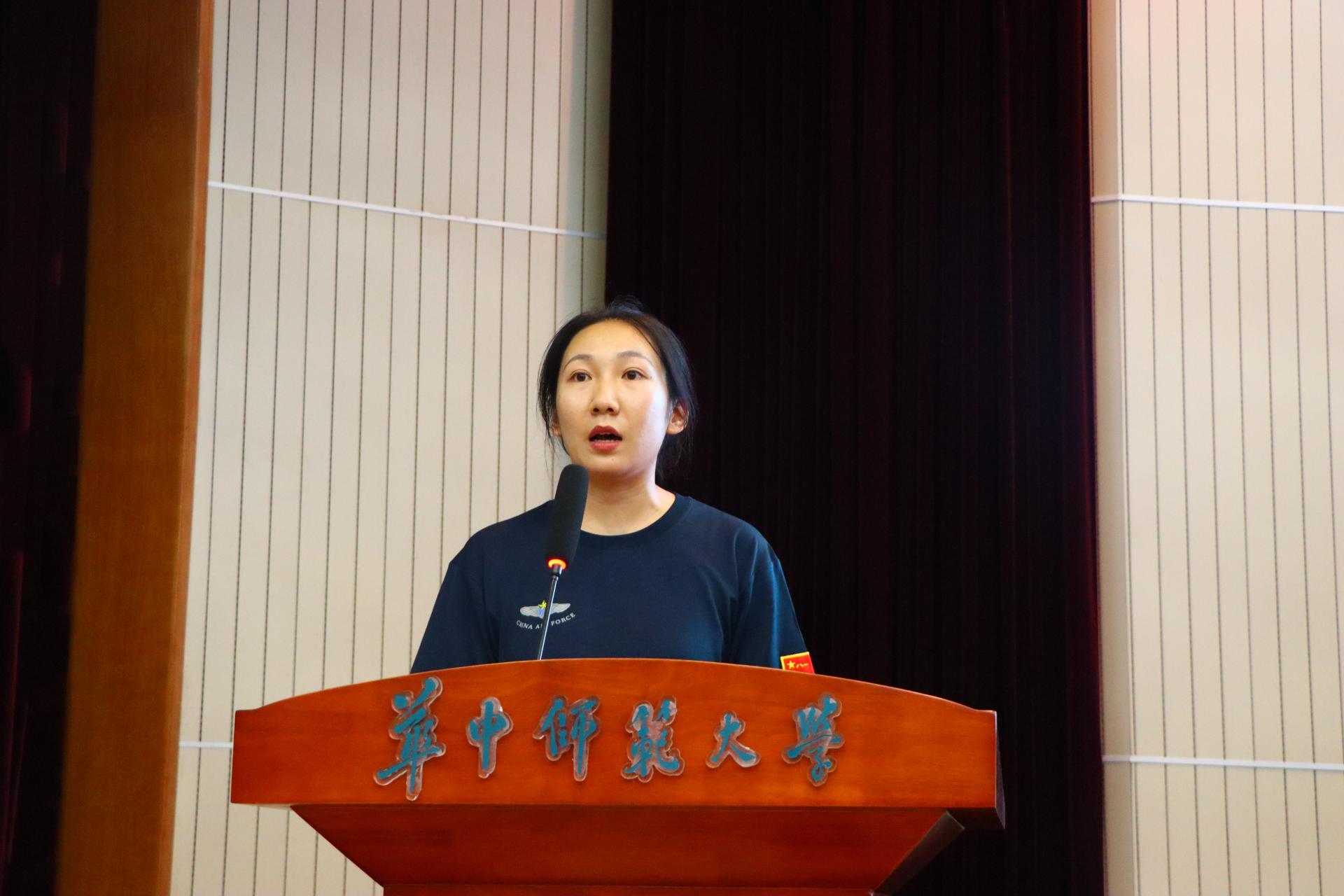徐圆对军训期间的相关事宜及安排做了详细介绍。她重点强调了军训的纪律规范,并从集体活动、内务卫生等方面对新生提出了具体要求。徐圆提醒全体新生在军训期间关注自身身体状况,保护信息、财务安全,谨防诈骗。最后,她希望全体同学以高标准严格要求自己,通过军训磨炼意志品质、锻炼身体、强健体魄,展现外院学子风采,接续外院辉煌。