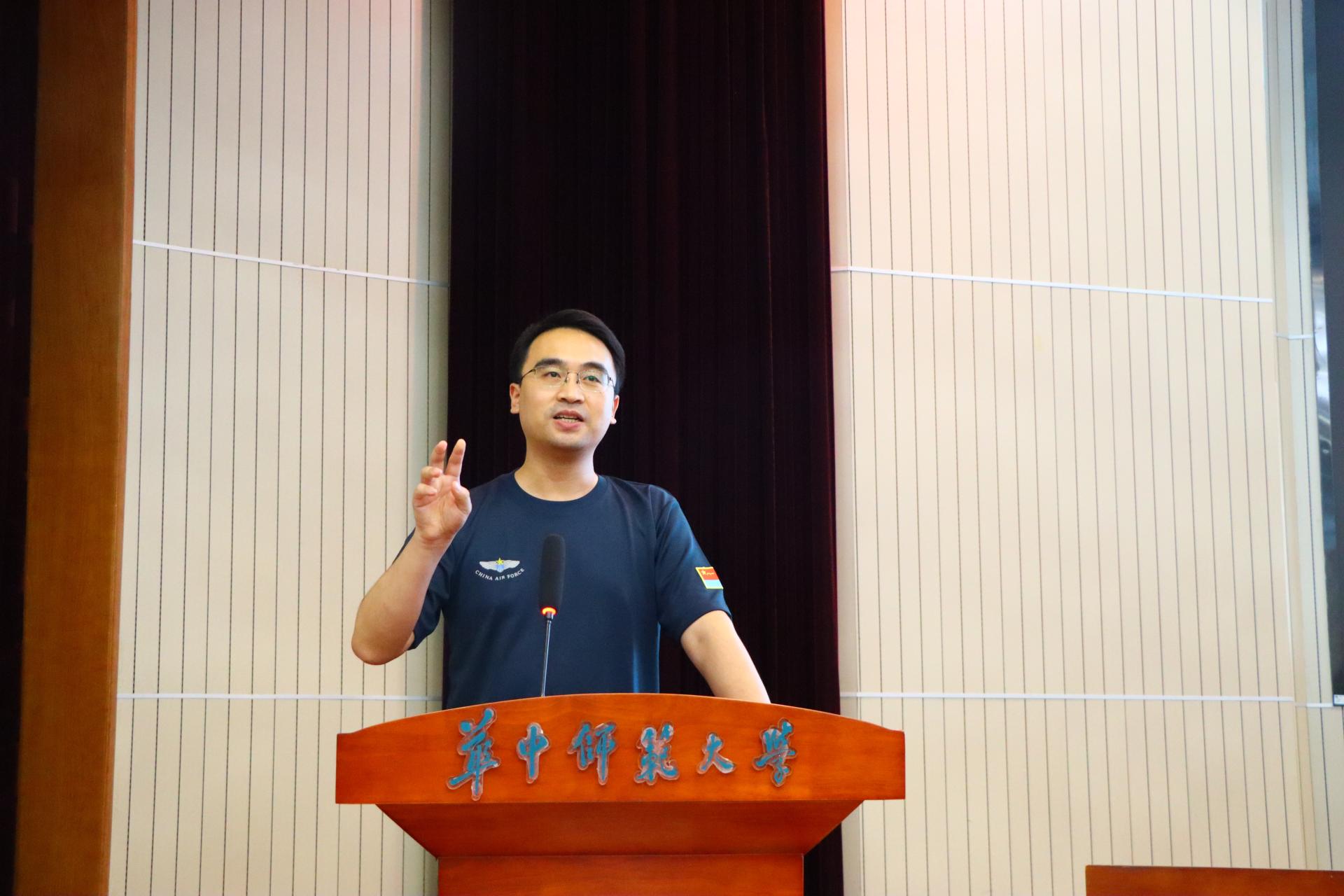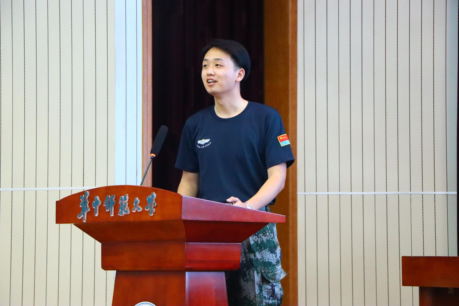 大会最后一项,陈哲讲话。他代表外院全体教职工欢迎新生及全体教官的到来,并向全体新生提出三点要求:第一学会适应,适应炎热天气、适应校园环境、适应大学生活;第二学会学习,学习新知识、学习新风貌、学习新生活;第三学会团结,搞好班级团结、讲好师生团结。最后,他祝愿2024级新生军训圆满成功,希望新生顺利愉悦地度过在华师的每一天。