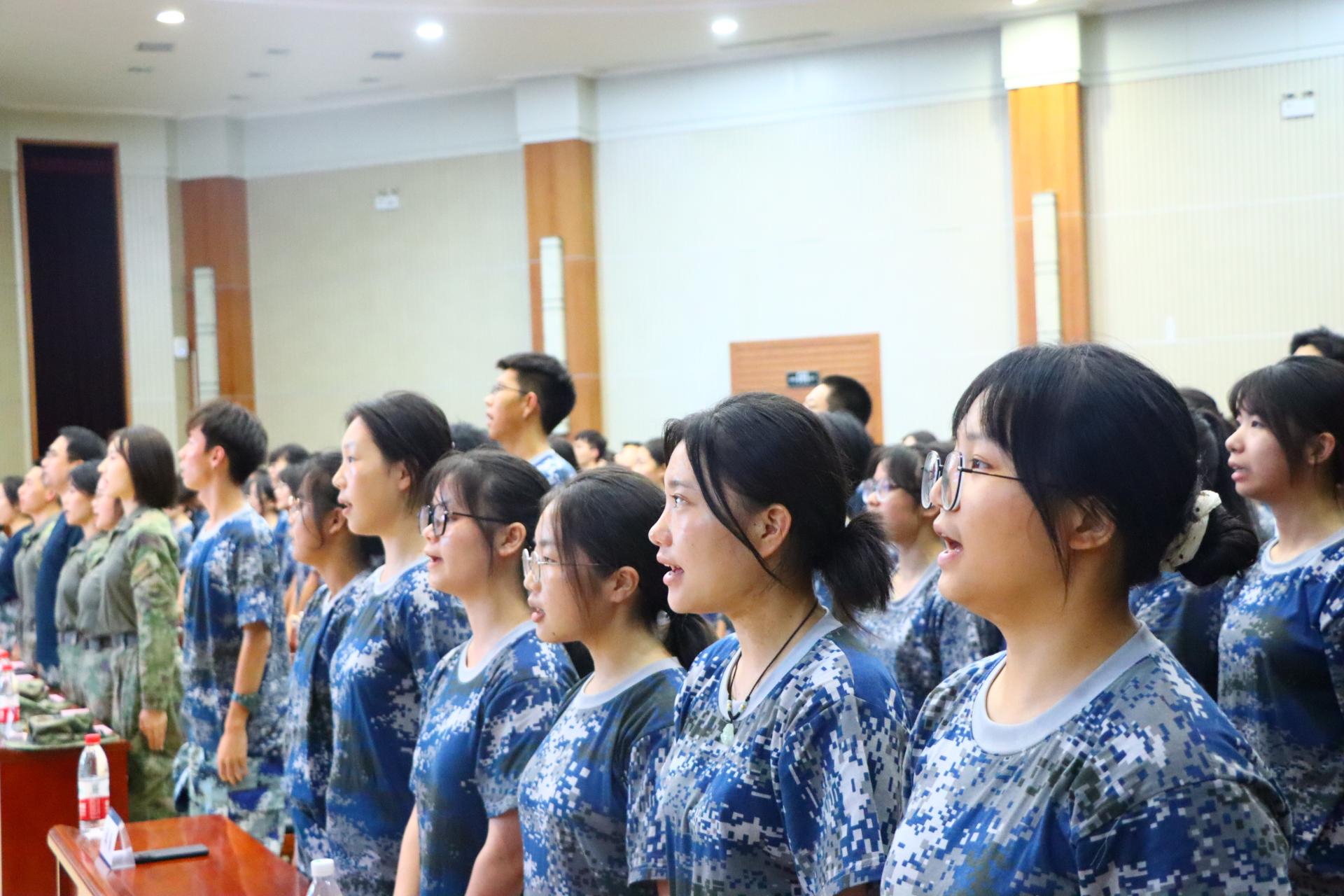 会议伊始,全体与会人员起立,齐唱国歌。随即进行新生大点名,军训教官作纪律要求及自我介绍。连长强调军训是国防教育的重要实践,是涵养家国情怀,增强团队意识的重要途径。他承诺:将坚守岗位,认真履职,保障军训安全顺利开展。