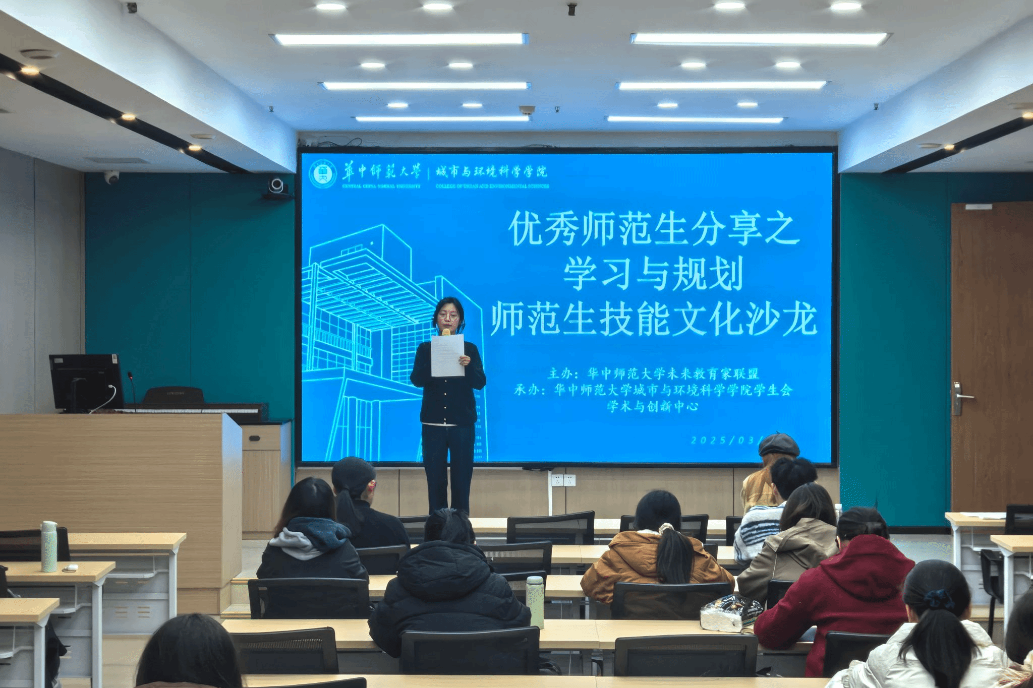 华大青年讯(通讯员 胡仪荷 刘承志)为增强师范生学习能力、提高专业技能水平,3月28日晚,城市与环境科学学院(以下简称“城环学院”)于十号楼南楼116举办2025年“优秀师范生学习与规划”师范生技能文化沙龙活动。此次活动邀请城环学院2021级本科生周艳芳、2022级本科生王逸超担任分享嘉宾。活动由王雅思主持。