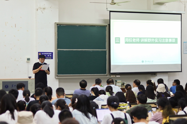 随后,本次野外实习后勤保障工作负责教师周权就野外实习行程安排和注意事项给同学们做了具体讲解。他详细介绍了此次野外实习的交通行程、住宿、饮食、疫情防控等情况,并提醒同学们在野外实习过程中要提高自我保护能力。经讲解,同学们对本次野外实习的全过程有了更为清晰的脉络。
