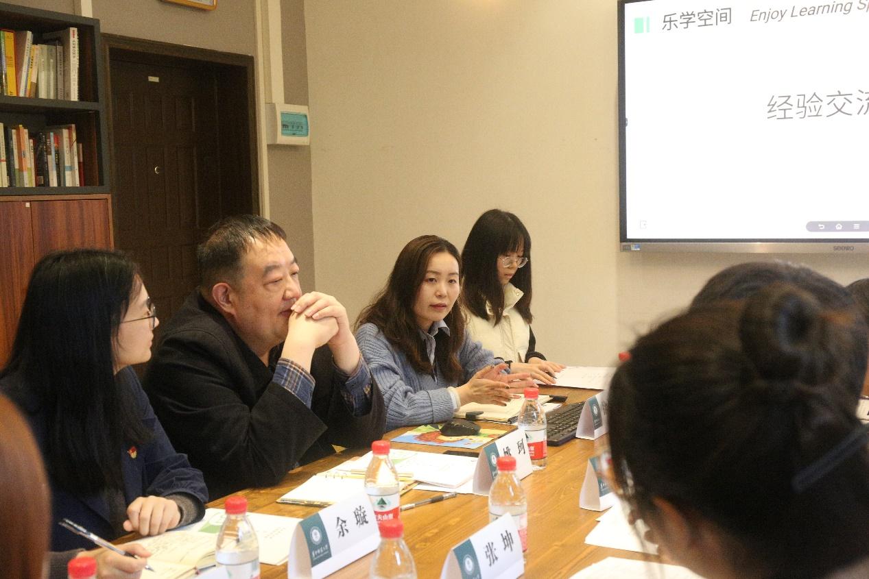 与会成员就院级学习发展中心的组建及未来发展进行交流,主要围绕“学生队伍选拔”“学生学习兴趣培养”“学生小导师辅导模式”等话题展开讨论。徐晨阳表示可以根据实际情况为学生提供团体辅导或者一对一辅导;学习发展中心要紧密联系辅导员、班主任和任课老师,形成合力,完善“三全育人”工作格局,共同助力学生成长成才。“乐学空间”两位学生负责人也分享了自己的经验和感悟,表示学生工作不仅提高了自己的综合能力,更丰富了大学生活,为人生增添色彩明亮的一笔。此环节中,双方代表进行了和谐友好地交流。