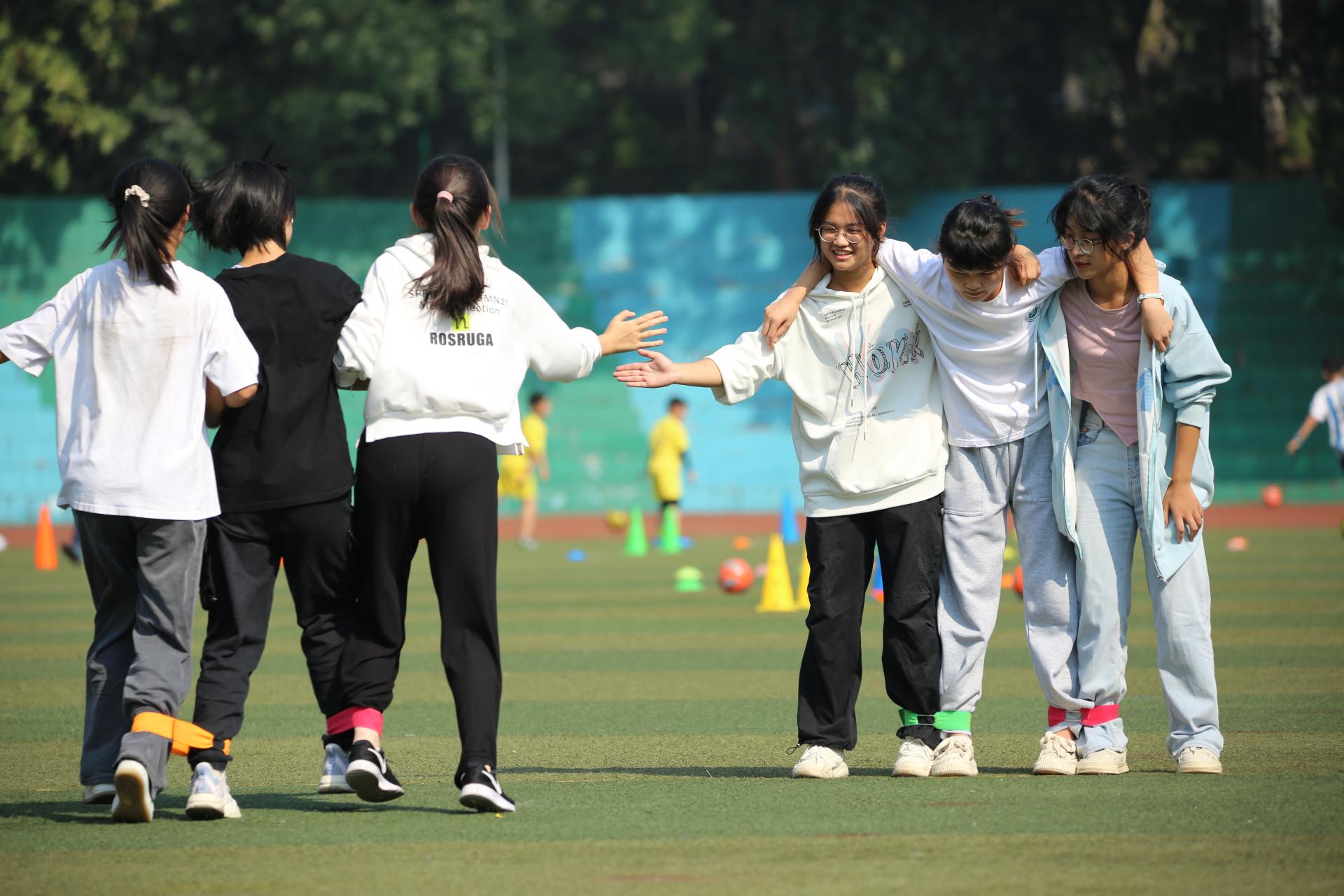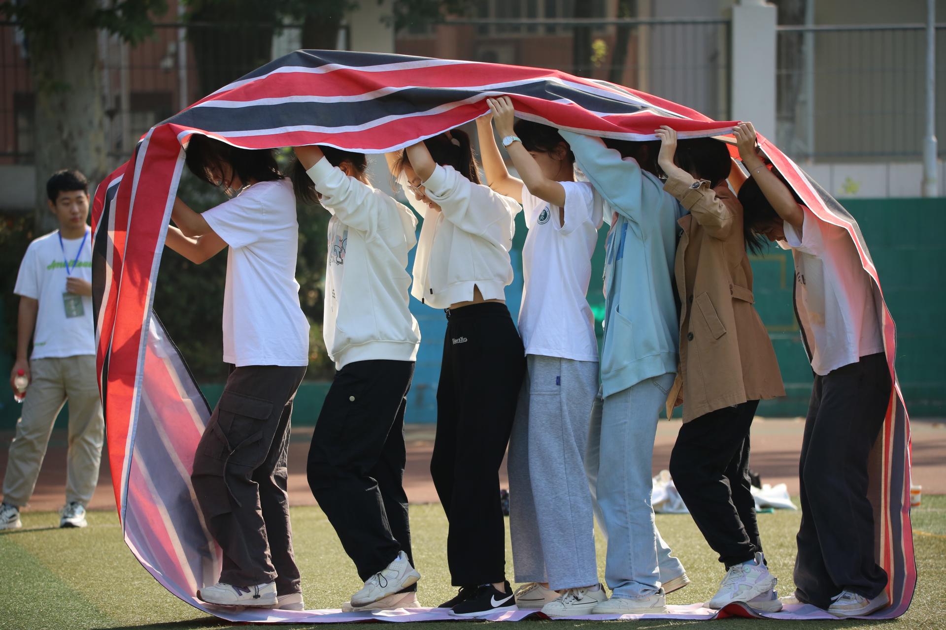 同学们满怀热情,团结协作,在欢乐中高效完成每个项目:“过河搭桥”需要四个人使用九个道具垫,脚不能接触地面,这个项目共同消耗体力和脑力,培养了同学们团结协作,奋斗不止的优良品质;“三人四足”项目中同组同学们步调一致,稳中求进,默契配合;“背靠背挤气球”项目中,同学们卯足干劲,一路“球”稳;参赛队员在“无敌风火轮”中要集体站在圆环内部,边走边向前滚动圆环,极大地考验了团队协作能力。