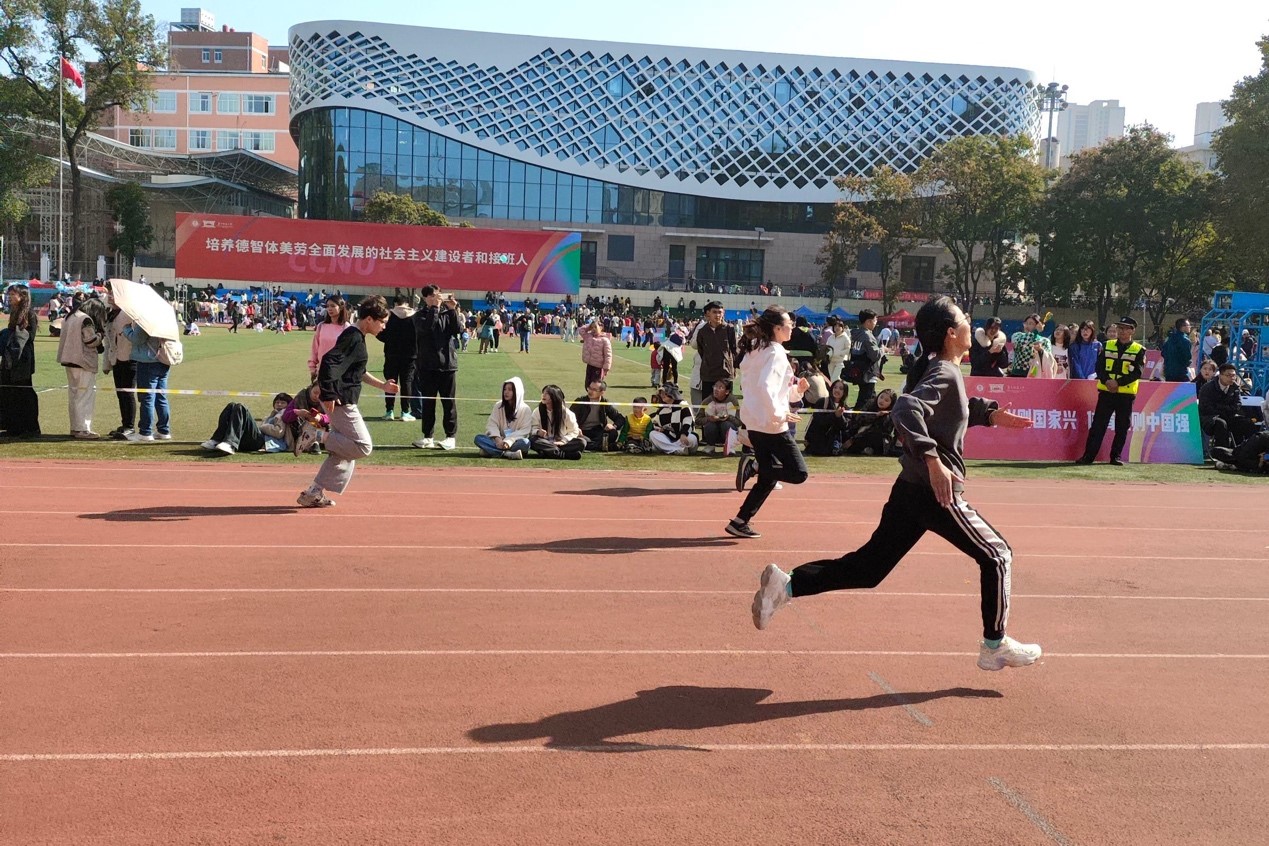 随着预备令响起,选手们抖擞精神,跃跃欲试,那是对挑战极限、突破自我的渴望与自信。枪声响起,蓄力与爆发在一瞬之间泄出,选手们如同离弦的箭一般冲了出去,他们步伐坚定,在十五秒不到的时间里,他们不断地加速,他们的信念在周边同学的呼喊中如熊熊烈火般愈燃愈烈。终于,冲过终点,在同学的簇拥下,他们不骄不馁,向周边的人展示着属于教育学院学子的风采。