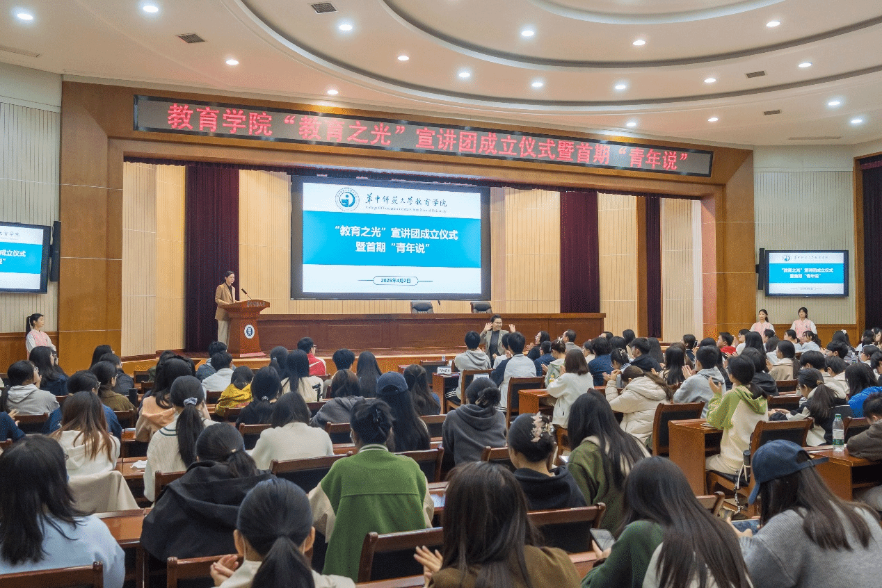 陈雪玲在“教育之光”宣讲团成立仪式上致辞,代表教育学院党委对“教育之光”青年宣讲团的成立表示衷心祝贺,勉励宣讲团成员牢记教育使命,坚定教育理想,做教育家精神的坚定传承者、教育真问题的勇敢探索者、教育改革的积极开拓者、教育初心的终身守望者,以实际行动传承百年师道,以青年之声点亮教育之光。