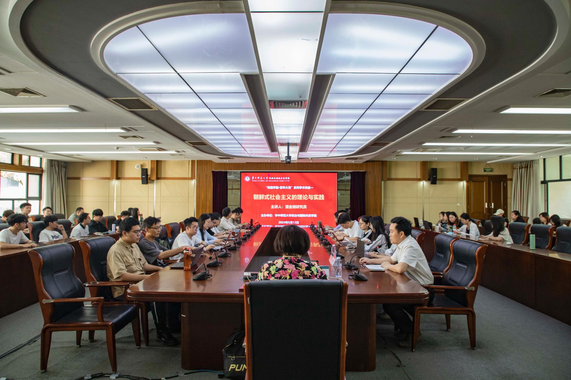 华大青年讯(通讯员 姜佳宜 陶政翰)5月13日,由政治与国际关系学院主办的“政国学园·百年大党”系列学术讲座第一期在逸夫国际会议中心二楼会议室举行。中国社会科学院国际共产主义运动研究部主任潘金娥作题为“朝鲜式社会主义的理论与实践”的专题讲座,科学社会主义研究所2023级、2022级硕士研究生以及全体博士生参与,此次讲座由华中师范大学国外马克思主义政党研究中心主任、政治与国际关系学院教授余维海主持。